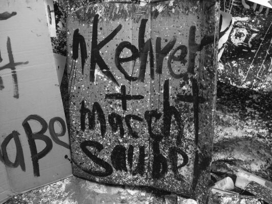 AUFGRUND DER SEIT 2018 STATTFINDENDEN GEWALTTÄTIGEN UND KRIMINELLEN HANDLUNGEN DER GESAMTEN DEUTSCHSPRACHIGEN PRESSE RUNDFUNK- UND FERNSEHANSTALTEN DIE SICH GEGEN MEINE KÜNSTLERISCHE ARBEIT UND GEGEN MEINE PERSON RICHTEN HABE ICH 2020 MEINE AUSSTELLUNGSTÄTIGKEIT EINGESTELLT