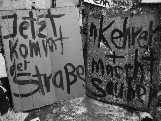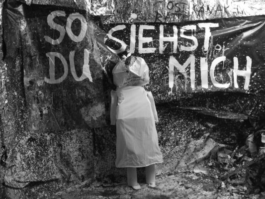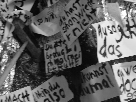 Als Zeichen und Protest gegen die Gewalttätigkeiten gegen meine künstlerische